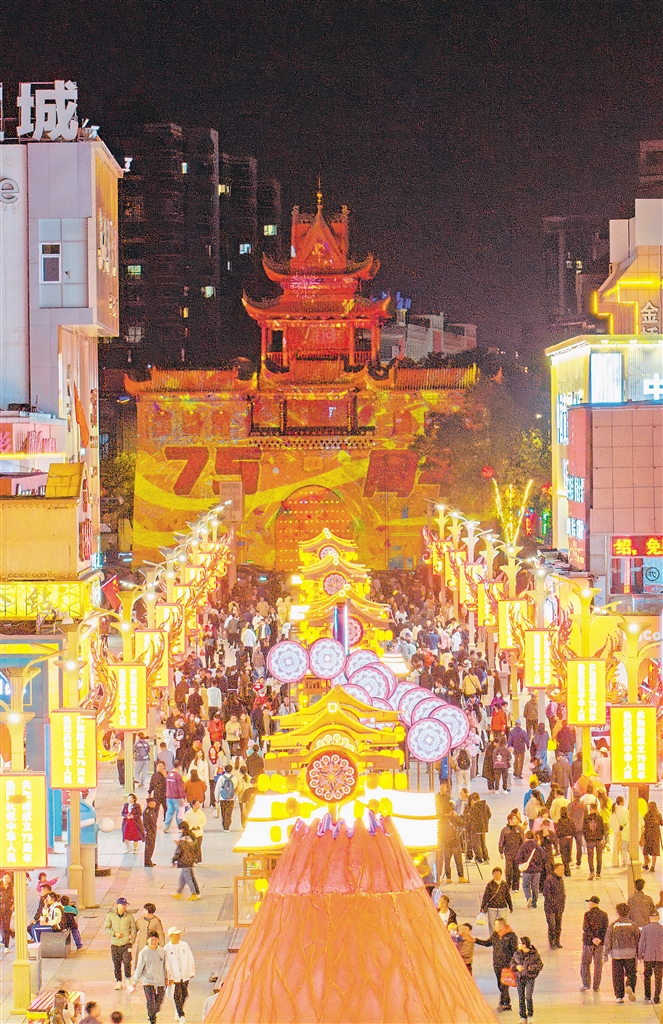 观古建光影、逛特色街巷、赏非遗展示、尝特色美食……今年国庆假期,鼓楼—玉皇阁历史文化街区燃起一把文旅旺火。兴庆区以场景营造、主题业态、演艺矩阵、夜游产品为实施路径,将该片区规划为“一带一轴五巷”,塑造文化旅游新地标。