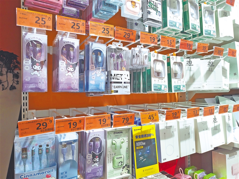 11月10日,正在店内选购手机充电器的一名消费者告诉记者:“现在大家换手机的频率很高,比如我最近换成了华为手机,女儿和丈夫用的都是苹果手机,家里不同接口的数据线就有好几条。我更喜欢带有多种接口的充电器,出门只需带一个,家里每个人都能用。”