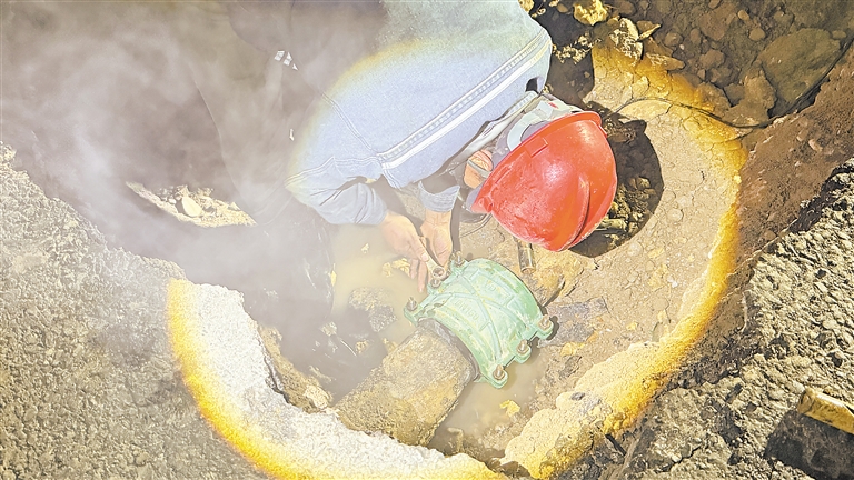 据西部热电经营管理部王洪斌介绍,13日20时许,接到辖区长相忆供热中心发出的超量失水警报后,第一时间派遣人员前往该区域查漏,迅速将漏点锁定。漏点位于输热主管道区域,该管道覆盖面积12.5万平方米,保障着1800户居民的冬季采暖。现因管体老化锈蚀,发生破裂,结合供热中心统计及现场勘测,该处失水量超过110吨/天,严重影响供热质量。为了尽快完成抢修任务,抢修人员有序展开施工,将积水排空后对破裂口进行焊接。“凌晨时分,看着回填完毕的路面,想到热水顺利通过刚刚修复的管道进入居民家中,在场的所有人都松了一口气。”王洪斌说。