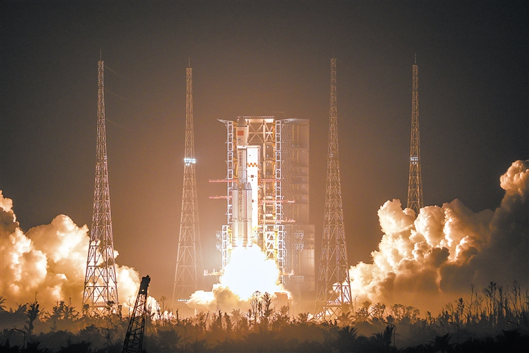 11月15日23时13分,搭载天舟八号货运飞船的长征七号遥九运载火箭,在我国文昌航天发射场点火发射,约10分钟后,天舟八号货运飞船与火箭成功分离并进入预定轨道,之后飞船太阳能帆板顺利展开,发射取得圆满成功。 新华社发