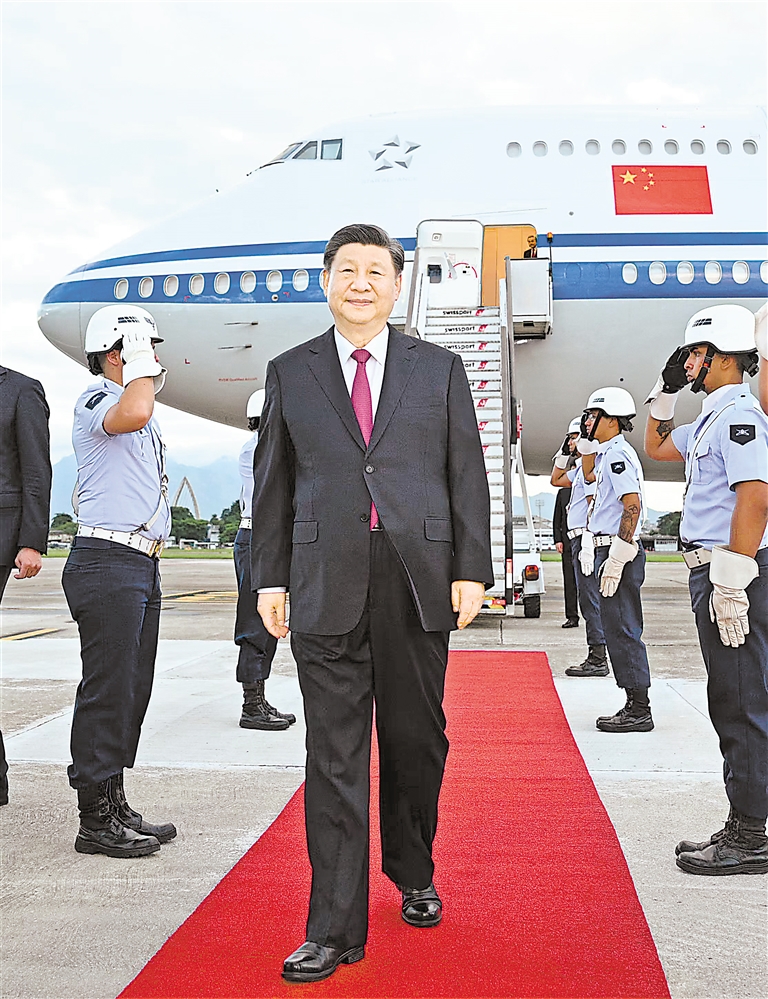 当地时间11月17日下午,国家主席习近平乘专机抵达里约热内卢,应巴西联邦共和国总统卢拉邀请,出席二十国集团领导人第十九次峰会并对巴西进行国事访问。 新华社记者 李学仁 摄