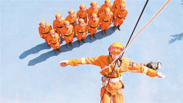 11月18日,消防员在训练。国家消防救援局宁夏机动队伍二大队创新性地推出了小培训、小观摩、小竞赛、小检查、小讲评“五小”活动,训练氛围日益浓厚,指战员的训练热情高涨,提升了训练质效。 本报记者 王婧雅 摄