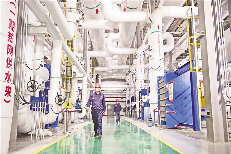 11月22日15时22分,国家能源集团宁夏电力灵武公司,运行专业人员检查、操作设备启动应急热源,8个电机锅炉、4个汽锅炉共12台50兆瓦总容量600兆瓦的锅炉一小时内实现全容量投运。据悉,该应急热源包含电锅炉和蓄热罐等设施,由灵武电厂联合国能烟台龙源投资2.9亿元于去年11月初建成,在保障冬季供热稳定和配合电网调峰方面发挥重要作用。 本报记者 白茹 摄