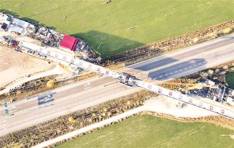 11月23日,银川西特大桥跨乌玛高速公路连续梁顺利合龙。 本报记者 赵磊 摄