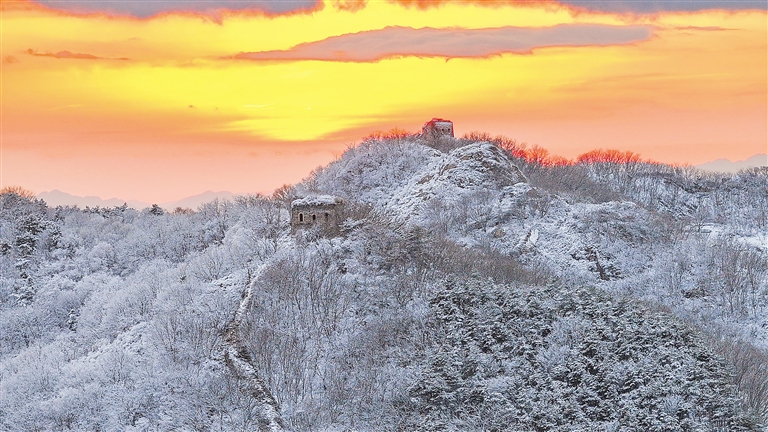 11月25日在河北省遵化市拍摄的雪后长城(无人机照片)。受寒潮影响,我国西北、华北、东北地区多地出现降雪天气。新华社发