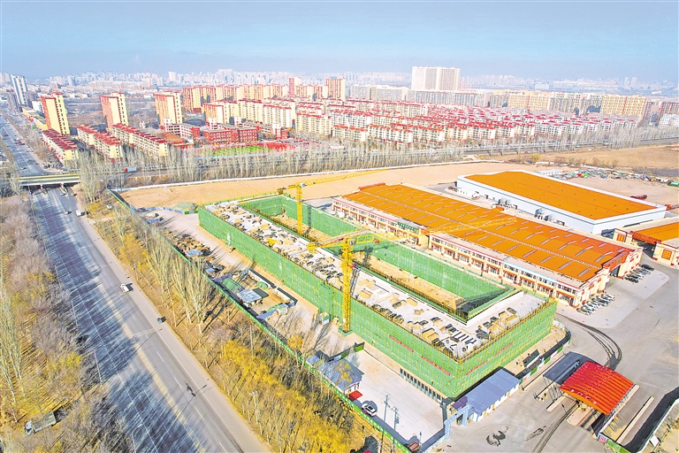 12月3日,宁夏四季鲜农产品综合批发市场冷链物流产业园10#冷链集配分拣中心项目抓紧建设。作为永宁县“百日攻坚战”重点项目之一,该项目自9月开工以来,仅用2个多月就实现主体结构封顶,预计2025年5月竣工投用。 本报记者 马楠 王洋 摄