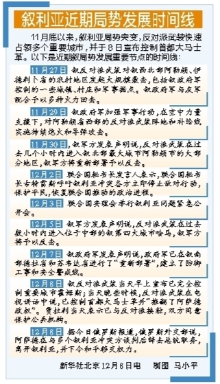 11月27日,叙反对派武装和极端组织自叙西北部向政府军发动大规模进攻,随后一路势如破竹,仅用12天便进入首都大马士革。