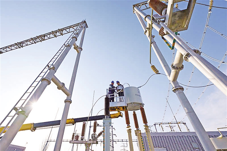 检修工人加班加点作业。 (图片由国网宁夏电力有限公司银川供电公司提供)