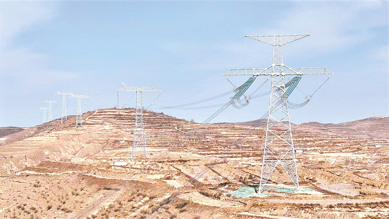 宁夏至湖南±800千伏特高压直流输电线路工程宁2标段甘宁交界处线路。 本报记者 鲁延宏 摄