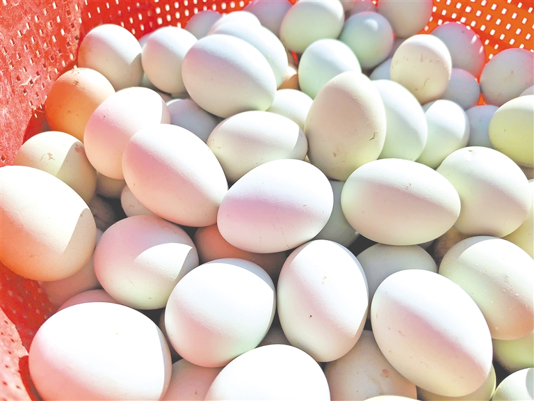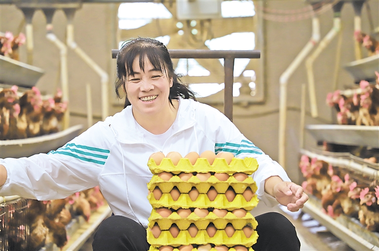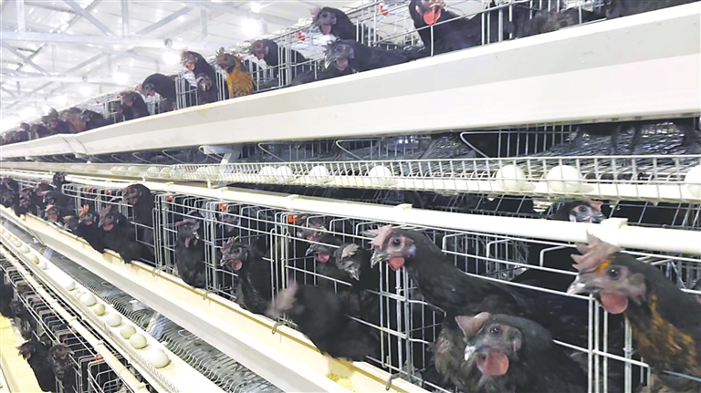 在小岔乡小岔村的标准化养鸡场内,村民郭有录按下按钮,鸡笼下的履带开始运转,将一枚枚光洁圆润的鸡蛋收集到蛋托中。“不光能一键自动收蛋,还可以自动为鸡补水、喂食、清理粪便,非常方便。”郭有录说。