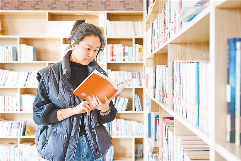 在村图书馆,马嘉欣利用业余时间学习党的理论知识和实务操作。
