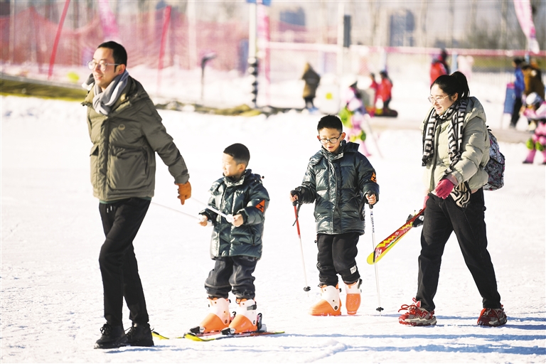 在父母的陪伴下,冰雪运动成为一项亲子运动。 本报记者 马楠 摄