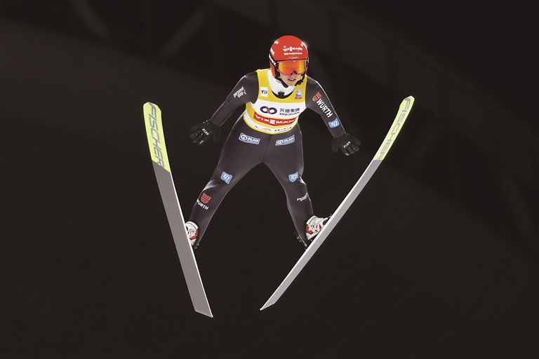 12月15日,德国选手卡塔琳娜·施密德在决赛中,最终她以221.1分的总成绩获得冠军。当日,2024—2025赛季国际雪联跳台滑雪世界杯女子个人标准台决赛在张家口崇礼国家跳台滑雪中心“雪如意”举行。 新华社发
