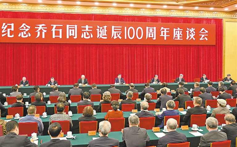 新华社北京12月16日电 中共中央16日上午在人民大会堂举行座谈会,纪念乔石同志诞辰100周年。中共中央总书记、国家主席、中央军委主席习近平发表重要讲话强调,现在,全党全国各族人民正满怀信心全面建设社会主义现代化国家、全面推进中华民族伟大复兴,一代代中国共产党人为之奋斗的美好理想正在一步步实现。我们要高举中国特色社会主义伟大旗帜,牢记党的初心使命,同心同德、奋发进取,不断创造无愧于历史、无愧于时代、无愧于人民的新业绩。