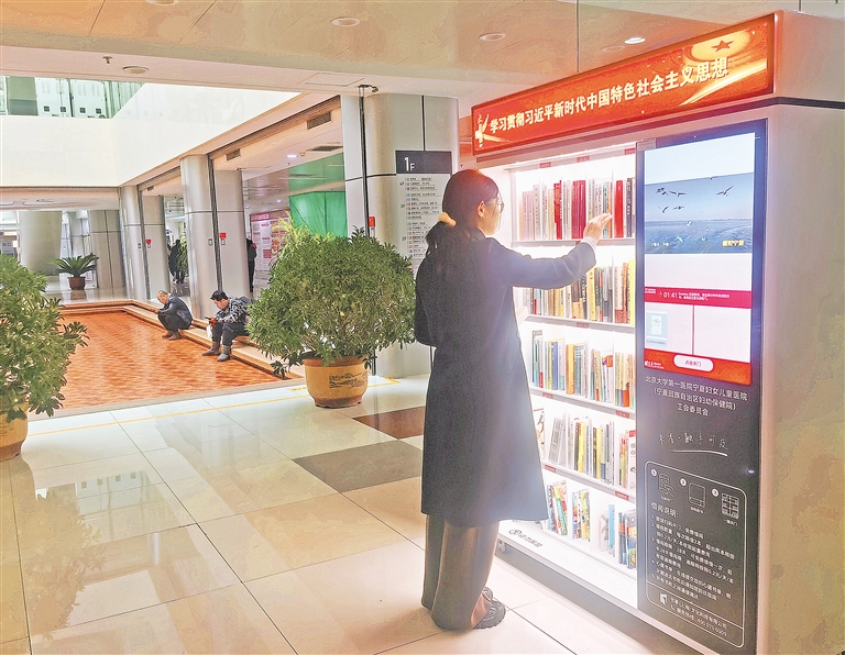 在银川市市民大厅,来办事的市民、“90后”王雨佳正在一台“书享”智慧书吧柜机里借书,“用微信扫码借书,不用交押金也不需要烦琐的注册,书柜里的书比较新,适合我们年轻人,还书也方便。”记者看到,这台电子图书柜里摆放着大约200册图书,都是最近才上市的新书,借阅起来也非常方便,可在遍布全区的近30个点位还书。