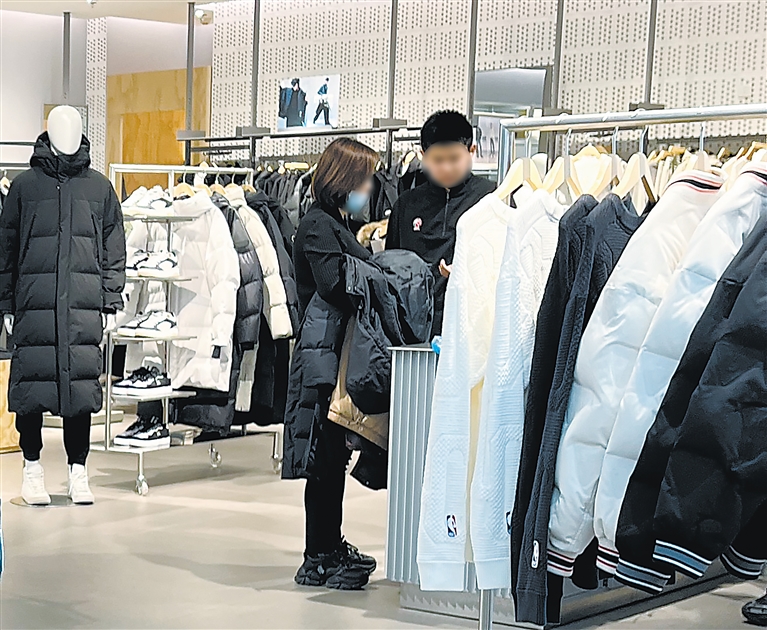 12月17日,银川市一家商场内,顾客在选购羽绒服。
