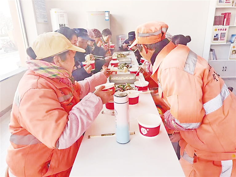 12月20日,石嘴山市大武口区朝阳街道工会联合宁夏环保集团城市服务有限公司大武口分公司工会,为环卫、绿化工人送上饺子。 本报记者 龚依然 摄