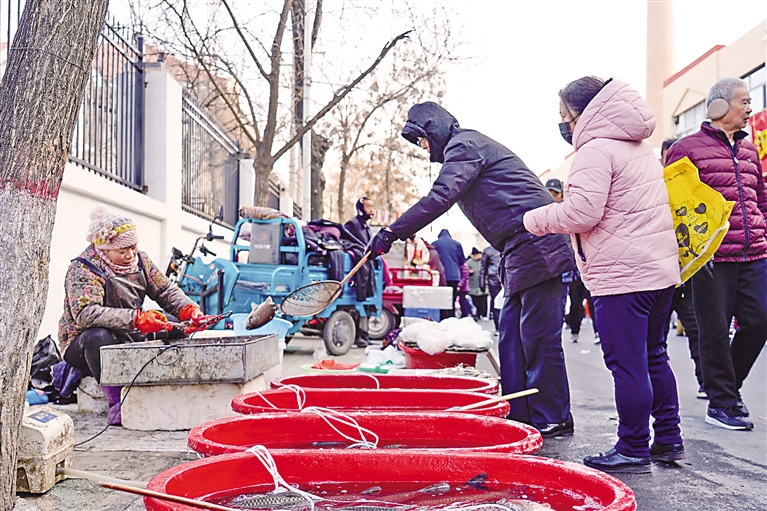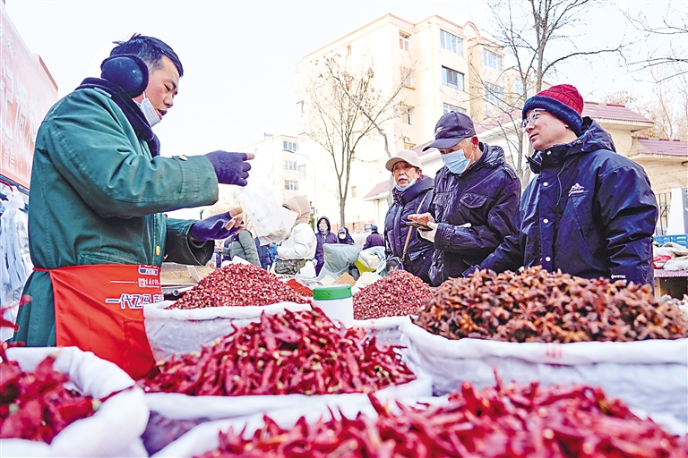 12月21日清晨,银川市海宝早市香料摊位前,摊主为顾客称调料。随着元旦与春节日渐临近,海宝早市迎来了市民采购的热潮。 均本报记者 马赛尔 李宏亮 乔新宇 摄