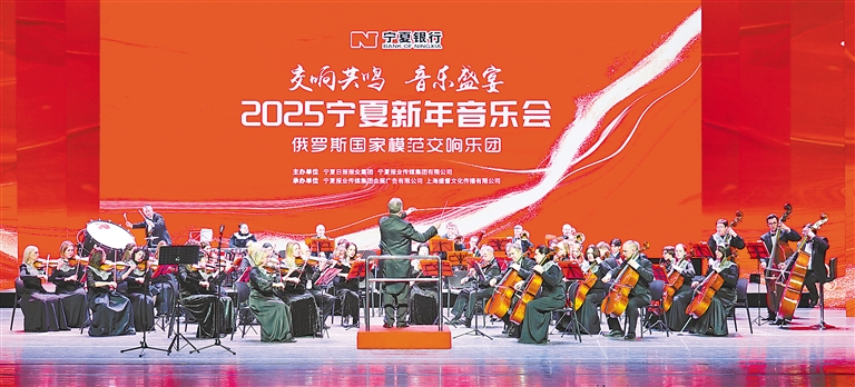 12月25日晚,由宁夏日报报业集团与宁夏报业传媒集团有限公司联合主办的“2025宁夏新年音乐会”在银川剧院举行。音乐会上,俄罗斯国家模范交响乐团为宁夏观众带来了《红旗颂》《春节序曲》等中国经典乐曲,以及《华尔兹幻想曲》等西方经典作品。 宁夏日报报业集团全媒体记者 乔新宇 摄
