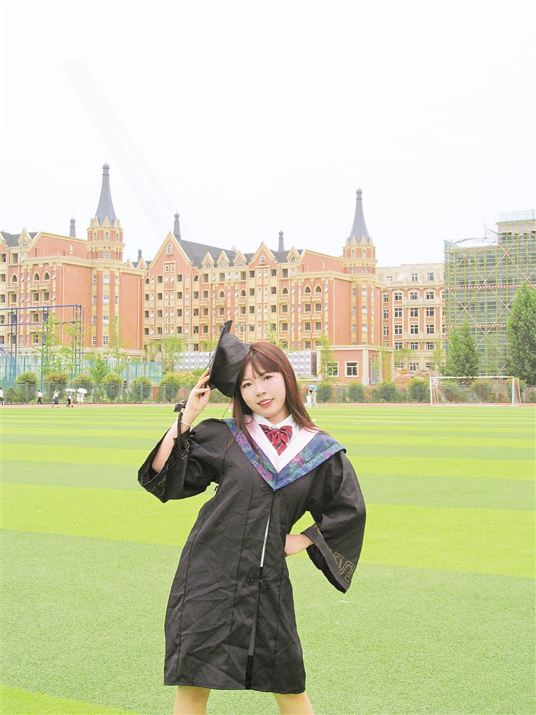 毕业前夕,王天鸽在校园留影纪念。 (图片由受访者提供)