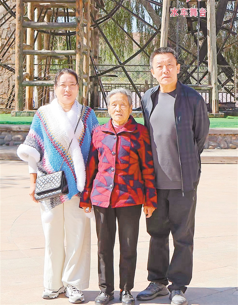 沈生明兄妹与母亲在景区合影。 (图片由受访者提供)