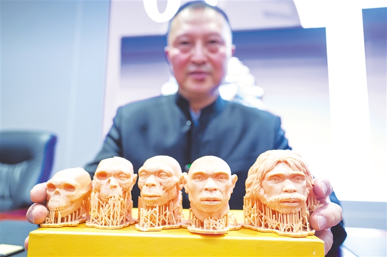 12月26日,参与“郧县人”2号头骨化石发掘工作的山西大学历史文化学院教授冯小波介绍2号头骨化石复原过程。眉弓突出、鼻梁粗大、毛发茂密……经过近8年研究,中国科学家12月26日在位于武汉的湖北省博物馆首次揭晓“郧县人”1号、2号头骨化石科学相貌复原头像。两具头骨分别属于生活于百万年前、年龄约25岁至45岁的女性和男性。 湖北省郧县人头骨化石高精度扫描及相貌复原研究工作于2017年6月启动,由湖北省博物馆、山西大学、中国科学院古脊椎动物与古人类研究所、武汉大学和北京联合大学等多家科研机构组成多学科、多领域、跨专业的科研团队。研究成果表明,1号头骨化石,女性,年龄25岁至45岁;2号头骨化石,男性,年龄25岁至45岁。 据专家介绍,北京人、陕西蓝田人、四川资阳人、安徽华龙洞人等古人类化石均做过相关的相貌复原工作,但因多数古人类化石保存不完整,缺失大部分颅骨关键部位,导致复原像不完美。此次对于“郧县人”头骨跨学科的综合研究,对古人类化石相貌复原具有极高的参考价值。 新华社发