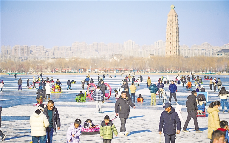 12月29日,银川海宝公园冰面上到处是人们欢乐的身影。当日是周末,市民们不约而同拖家带口到此体验快乐冰趣。 本报记者 马楠 摄