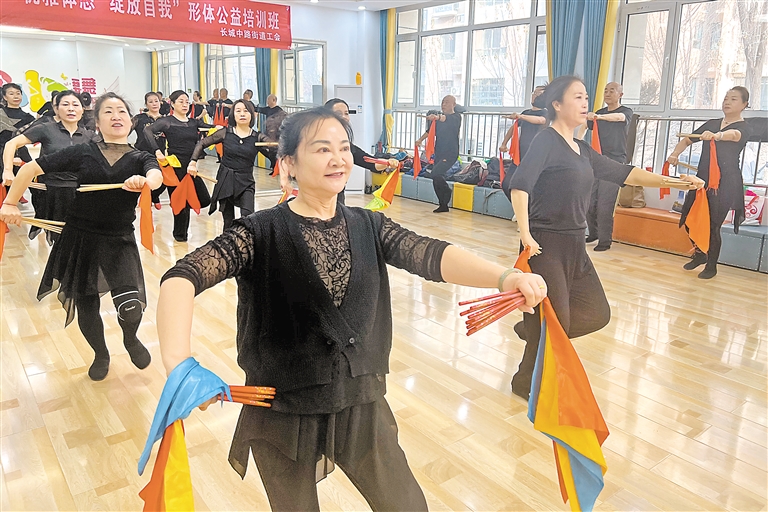 12月20日9时,银川市金凤区长城中路街道鲁银社区老年大学舞蹈班的学生们纷纷赶来上课。简单热身后,这群平均年龄超50岁的学生在老师的带领下跟随音乐转头、扭胯、挺胸、转圈……不一会儿,就学完了一节动作。