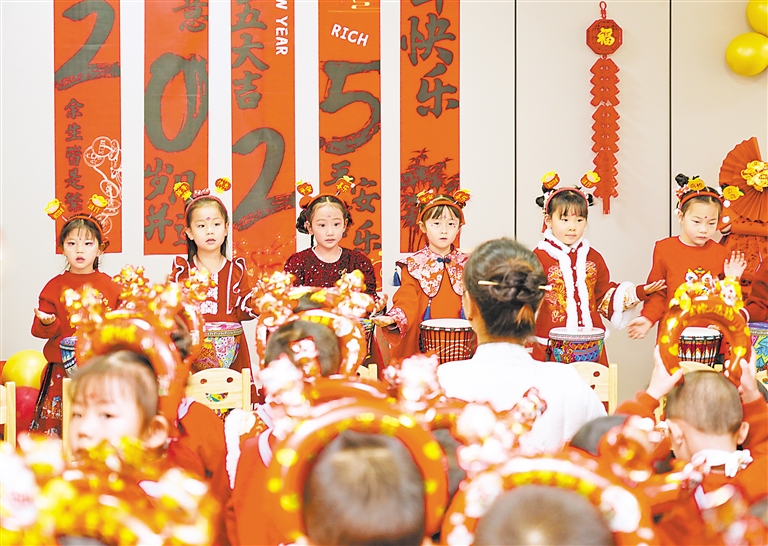 12月30日,银川市金凤区第十三幼儿园,孩子们身着特色节庆服饰喜迎元旦。 本报记者 乔新宇 实习生 滕苗 摄