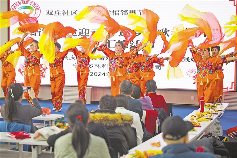 12月30日,银川市兴庆区丽景街街道双庄社区联合兴庆区数字经济科创园举办迎元旦文艺演出。 本报记者 马楠 王洋 摄