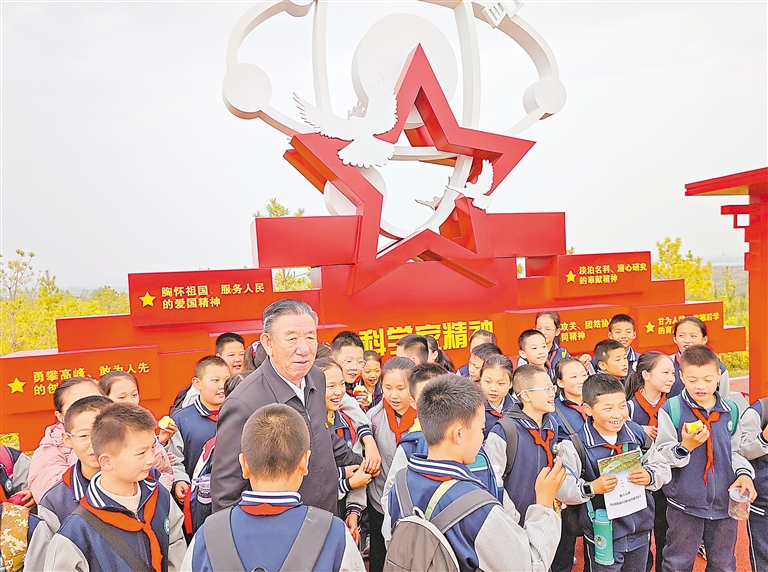 王有德为前来研学的孩子们讲述治沙故事。 (图片由受访者提供)