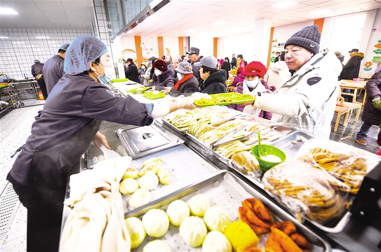 1月2日,永宁县望远镇银子湖社区食堂正式投用,居民排队选购自己喜欢的饭菜。据介绍,该社区食堂不仅解决了老年人“一餐热饭”的问题,还为老年人提供休闲娱乐、康养理疗、舞蹈排练、书法绘画、交流学习、相互陪伴的温馨环境。 本报记者 马楠 王洋 摄