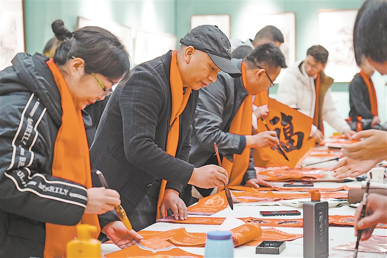 1月2日,书法家挥毫泼墨,为市民书写、赠送春联。当天,“我的中国梦”文化进万家、“强基工程”文艺助力基层精神文明建设行动、“万福迎春”公益活动启动仪式,在宁夏人民剧院观唐美术馆举行。 本报记者 乔新宇 实习生 滕苗 摄