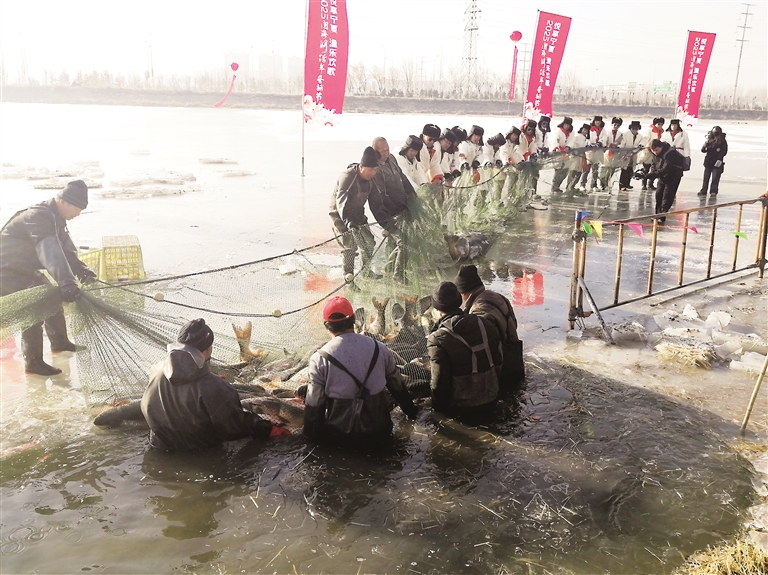 1月1日,银川阅海湖跨年冬捕开网,现场一条重达45.8斤的花鲢“头鱼”以22888元成交。近年来,依托阅海湖独特优势,宁夏阅海实业集团有限公司推出“旅游+绿色湖泊”项目,夏季开通“旭日航班·星辰之旅”航线,将阅海湖各景点串联起来,实现一站式畅玩;冬季推出“冰雪+”“旅游+”项目模式,让冰雪“冷资源”赋能旅游“热经济”。 宁夏日报报业集团全媒体记者 焦小飞 摄