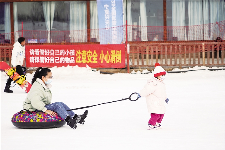 近日,游客在银川市鸣翠湖滑雪场玩雪圈。进入冰雪旅游季,银川市各滑雪场、景区纷纷开展冬季冰雪文旅项目,吸引人们前来体验冰雪乐趣。 本报记者 李宏亮 摄