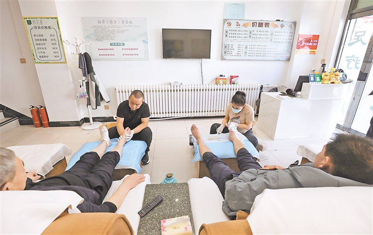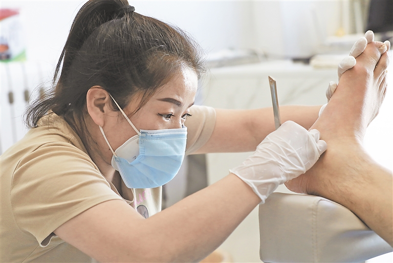 刘娟娟的修脚技艺成为按摩店吸引顾客的一大亮点。