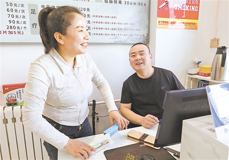 每天,牛安营和刘娟娟早早来到店里,打扫卫生,做准备工作。“小牛小两口的手艺可真不错,每次按完都感觉轻松。”老赵是牛安营和刘娟娟店内的常客,对于他们的优质服务,他称赞道。