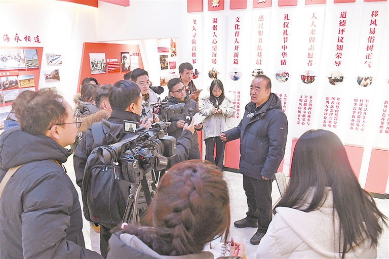 ②盐池县花马池镇佟记圈村致富带头人李晓飞向记者介绍本村婚俗改革、基层自治情况。
