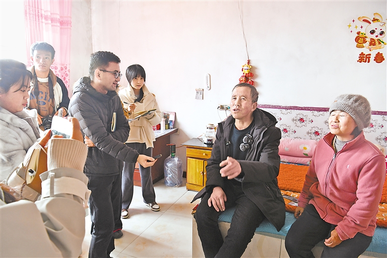 ①同心县河西镇杨河套子村“低彩礼”户王志林夫妇向记者讲述子女娶嫁情况。