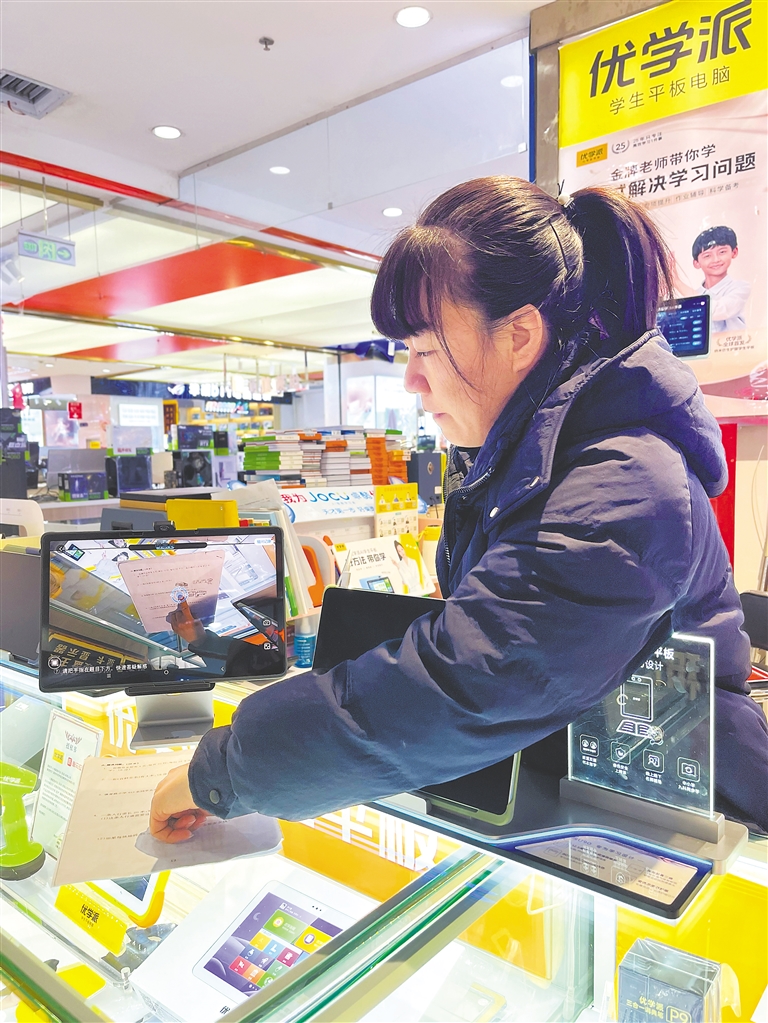 1月5日,记者在银川市一家书店看到,销售学习机的柜台里摆放着科大讯飞、优学派等多个品牌的学习机。“智能化程度高,功能也比较多。”专柜销售人员介绍,科大讯飞学习机能够通过AI技术精准分析学生的学习情况,找出薄弱知识点,并提供个性化的学习方案,帮助学生高效学习。“比如这款学习机,能够从学前启蒙一直用到孩子高考,并且课程内容会一直更新。”销售人员介绍,科大讯飞学习机的价格相比其他学习机要高,根据配置和功能不同,价格在3000元到1万元之间。
