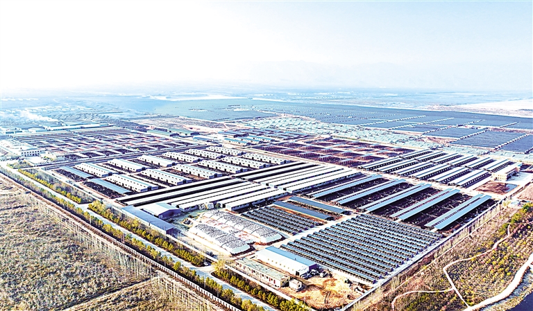 1月2日,宁夏中卫东北部的沙漠腹地,光伏板相连组成蓝海,将阳光转化为源源不断的绿色能量。宁夏腾格里沙漠新能源基地项目一期100万千瓦已于去年4月顺利并网运行,累计送出电量20.86亿千瓦时;二期200万千瓦正加紧筹备投运。与一期100万千瓦光伏项目相比,二期项目太阳能光伏板支架全部采用平单轴式,吸收太阳光能效率更高。项目全部完工并网后,每年可发电39.46亿千瓦时,节约120.7万吨标准煤,减少二氧化碳排放量约329.38万吨。仅在中卫市,其新能源场站已达130座,总装机容量1029.4万千瓦,占中卫电网发电总装机容量的85.43%。今年,中卫市预计还将新增新能源场站32座。届时,源源不断的绿色清洁电能将搭乘宁夏—湖南±800千伏特高压直流电力外送大通道,进入三湘大地。