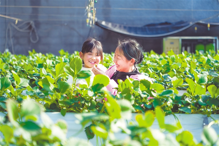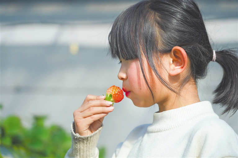 1月9日,市民在银川市西夏区兴泾镇泾华村有机草莓采摘园采摘。近日,该村种植的草莓陆续成熟,在供应市场的同时,吸引市民前来品尝采摘。目前,泾华村建有34栋日光拱棚、9栋四季暖棚,种植西瓜、番茄、草莓等高品质绿色果蔬,每年可为村民增收约260万元。 本报记者 杨嘉琪 李宏亮 摄