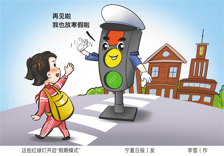 随着寒假的到来,银川市一些地段的红绿灯也开启了“假期模式”: