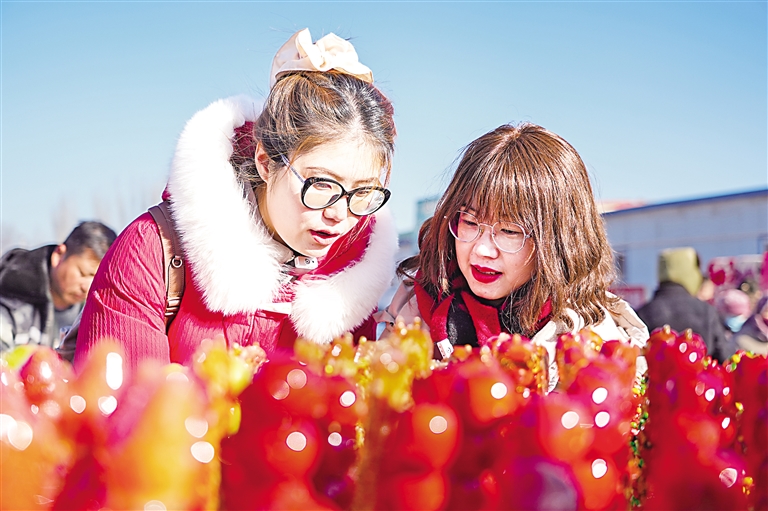 近日,贺兰县立岗镇农贸大集上,商品琳琅满目让人目不暇接,一串串红彤彤的冰糖葫芦吸引顾客购买。