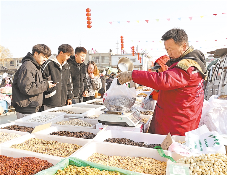 1月11日,记者走进贺兰县金贵镇传统大集,只见摊位一个挨着一个,各种年货琳琅满目,十里八乡的人们赶来置办年货,集市热闹非凡,新春氛围感拉满。 本报记者 王婧雅 摄
