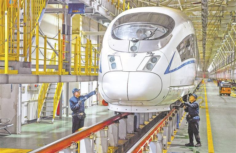 1月14日凌晨2时,兰州铁路局兰州车辆段银川动车所,工作人员检查动车检修情况。2025年春运自1月14日开始,至2月22日止。春运期间,银川火车站管内各站预计发送旅客152.4万人次、日均发送旅客3.8万人次。
