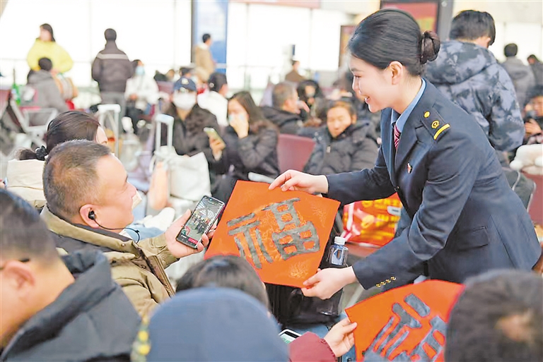 车站为乘客送上“祝福”。 本报记者 裴云云 实习生 何硕 摄