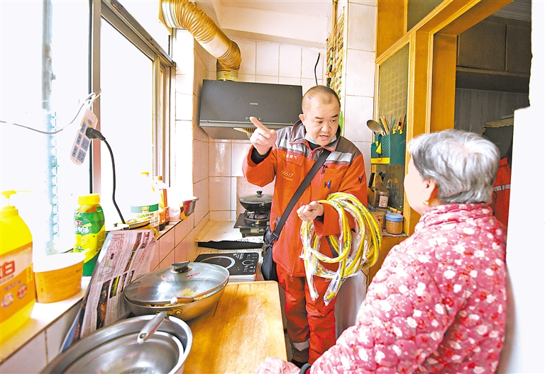 1月21日,天然气公司工作人员向居民讲解天然气安全常识。近日,银川市兴庆区文化街街道丰收社区292户居民用上了天然气。