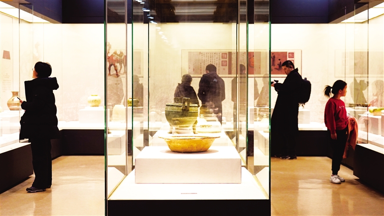 1月23日下午,在宁夏博物馆一楼临时展厅,由宁夏博物馆和河南博物院联合主办的“华夏文明之源——河南文物珍宝展”吸引众多市民前来参观。 本报记者 王猛 乔新宇 实习生 滕苗 摄
