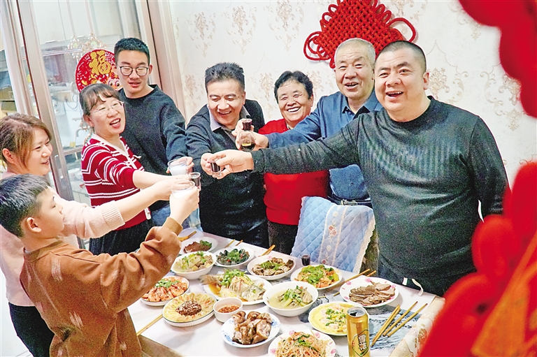 1月28日,银川市民孙尚连(右二)一家的年夜饭。 本报记者 马楠 王洋 实习生 孙莎莎 摄